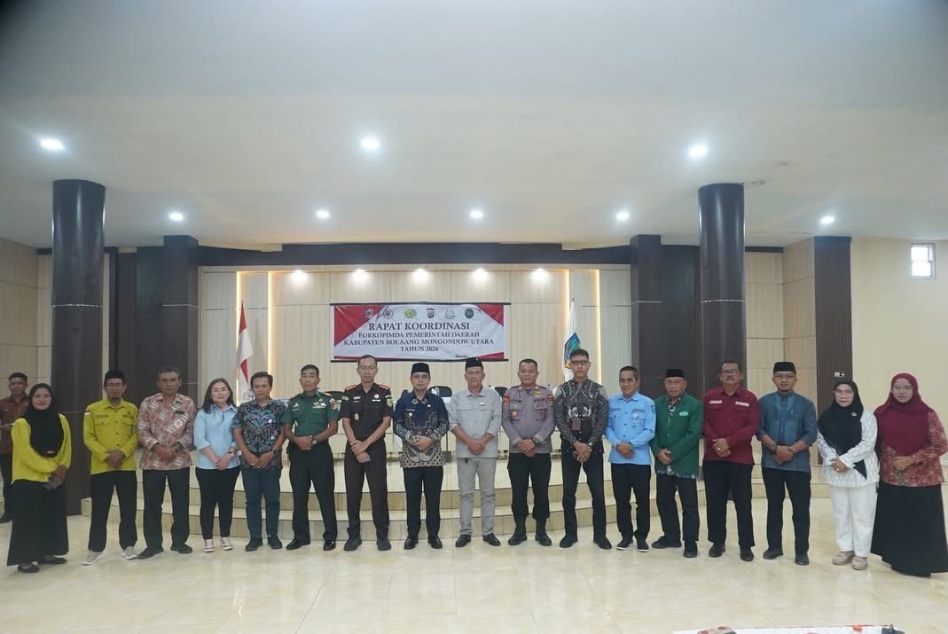 SATUBMR.BOLTARA- Bupati Bolaang Mongondow Utara (Boltara), Dr. Sirajudin Lasena, SE., M.Ec.Dev, membuka secara resmi Rapat Koordinasi Forum Koordinasi Pimpinan Daerah (Forkopimda) kabupaten Boltara dalam rangka menyongsong bulan suci Ramadhan 1447 H bertempat di Aula Lantai III kantor Bupati, Kamis. (12/02/2026).