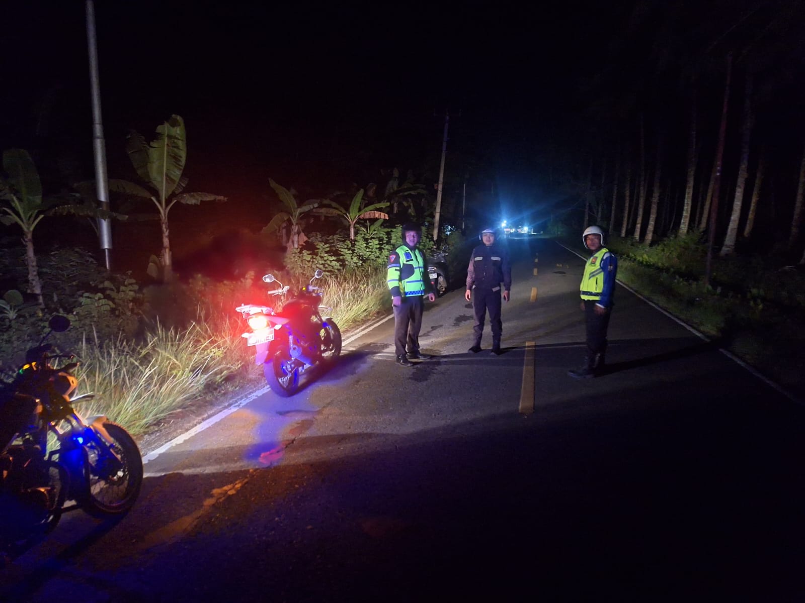 Patroli hunting kemudian dilanjutkan di Desa Toluaya tepatnya di depan Kantor KPU Bolsel, berdasarkan laporan masyarakat setempat. Di lokasi tersebut ditemukan sekelompok anak muda yang bersiap melakukan balap liar, namun berhasil dibubarkan oleh petugas. Selanjutnya, barang bukti berupa kendaraan bermotor diamankan di Pos 920 Satlantas dengan dukungan personel Polsek Bolaang Uki. Kegiatan patroli berakhir pada pukul 03.00 WITA dalam keadaan aman dan kondusif.