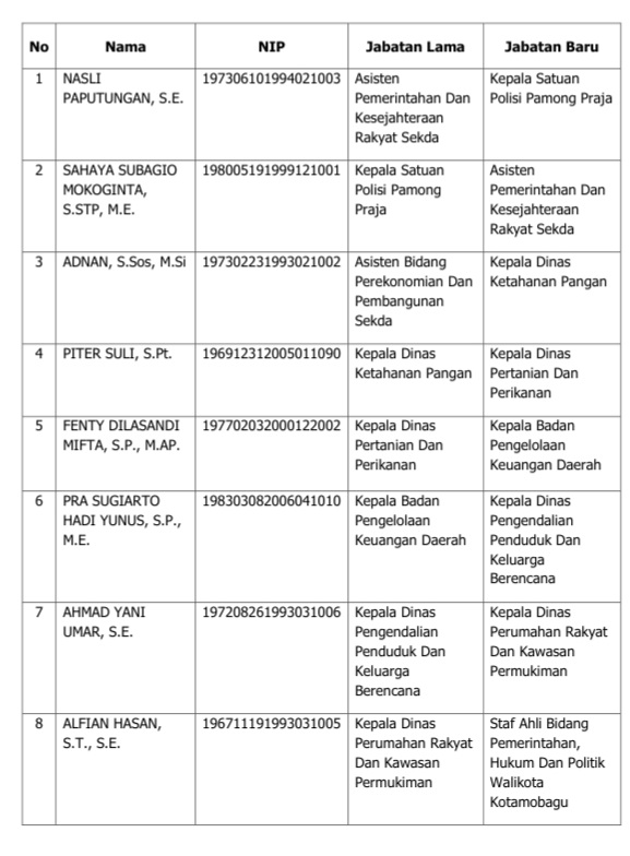 Kebijakan ini merupakan bagian dari komitmen Wali Kota Kotamobagu, dr. Weny Gaib, bersama Wakil Wali Kota, Rendy Virgiawan Mangkat, untuk memperkuat kinerja organisasi perangkat daerah (OPD) serta mengoptimalkan pelayanan publik.