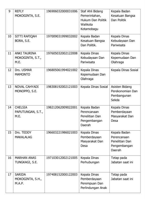 Berikut Daftar Nama Pejabat Eselon II Pemkot Kotamobagu yang Baru Dilantik