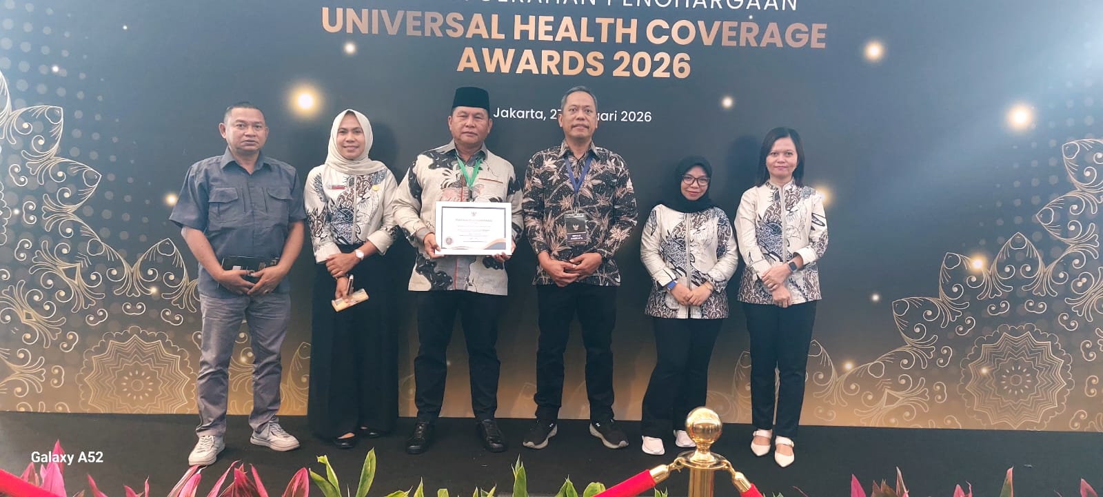Piagam penghargaan diserahkan oleh Menteri Koordinator Bidang Pemberdayaan Masyarakat, Abdul Muhaimin Iskandar, sebagai bentuk apresiasi atas komitmen pemerintah daerah dalam memperluas akses layanan kesehatan bagi masyarakat.